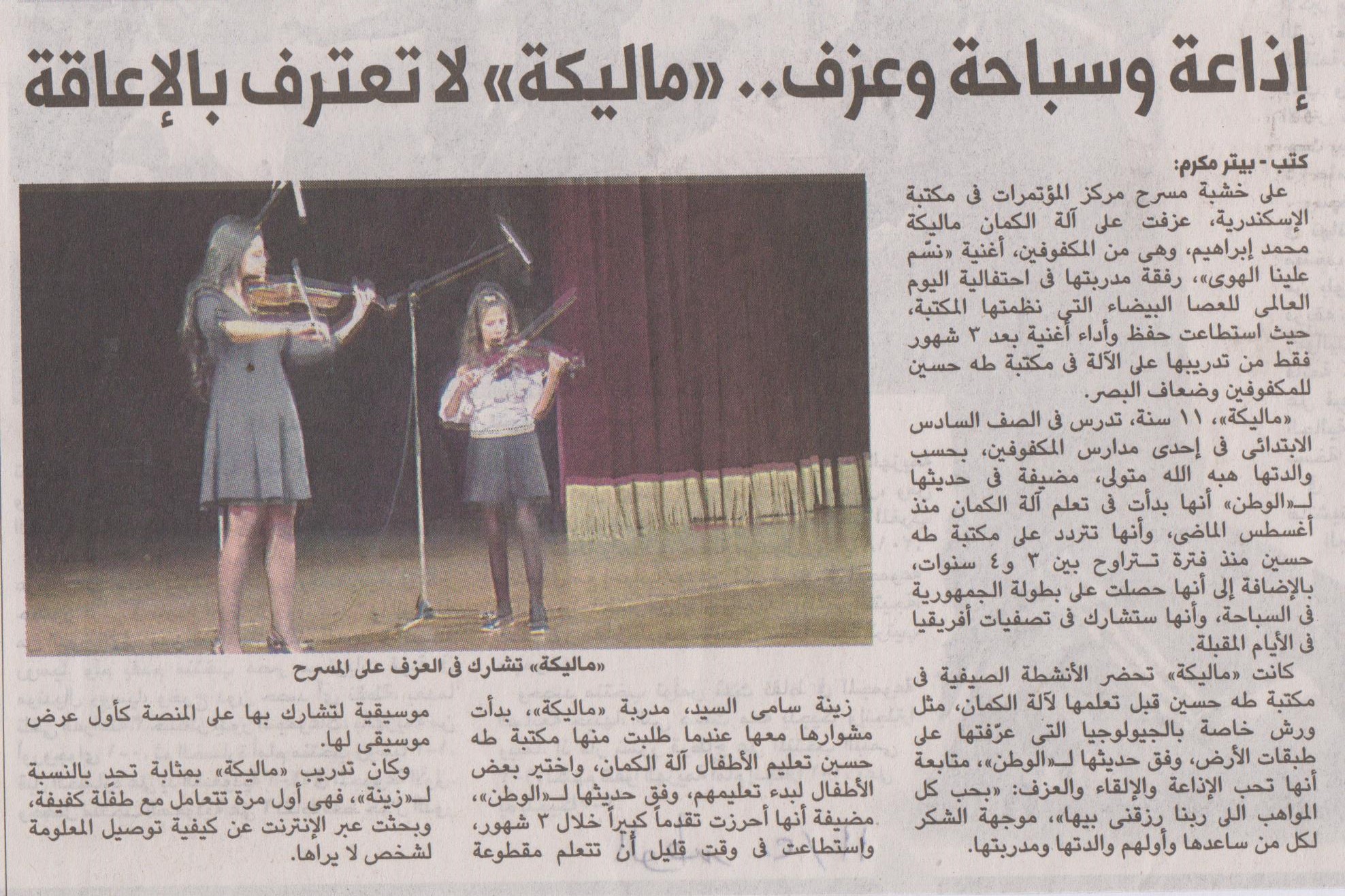 إذاعة وسباحة وعزف .. "ماليكة" لا تعترف بالإعاقة