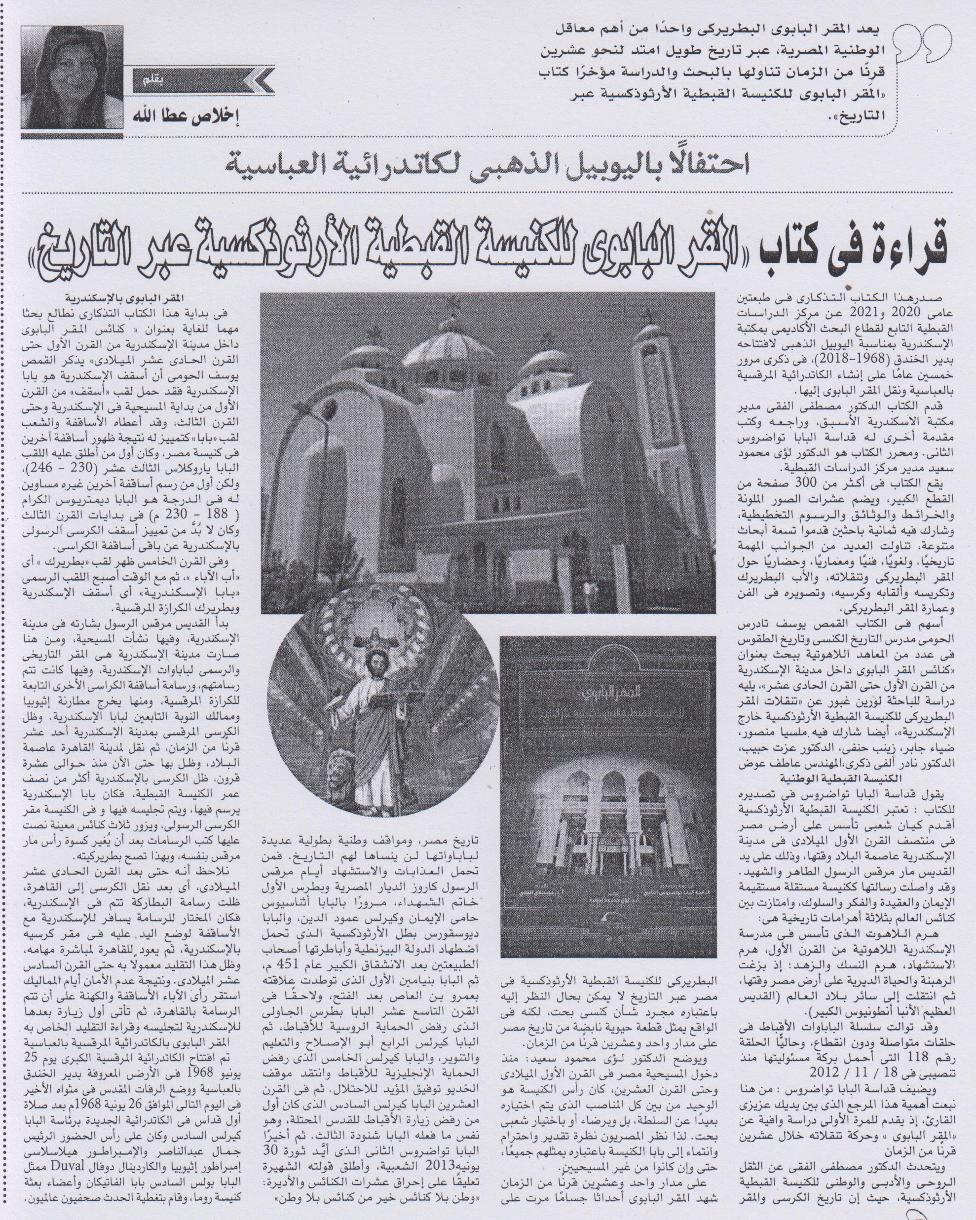 قراءة في كتاب "المقر البابوي للكنيسة القبطية الأرثوذكسية عبر التاريخ"