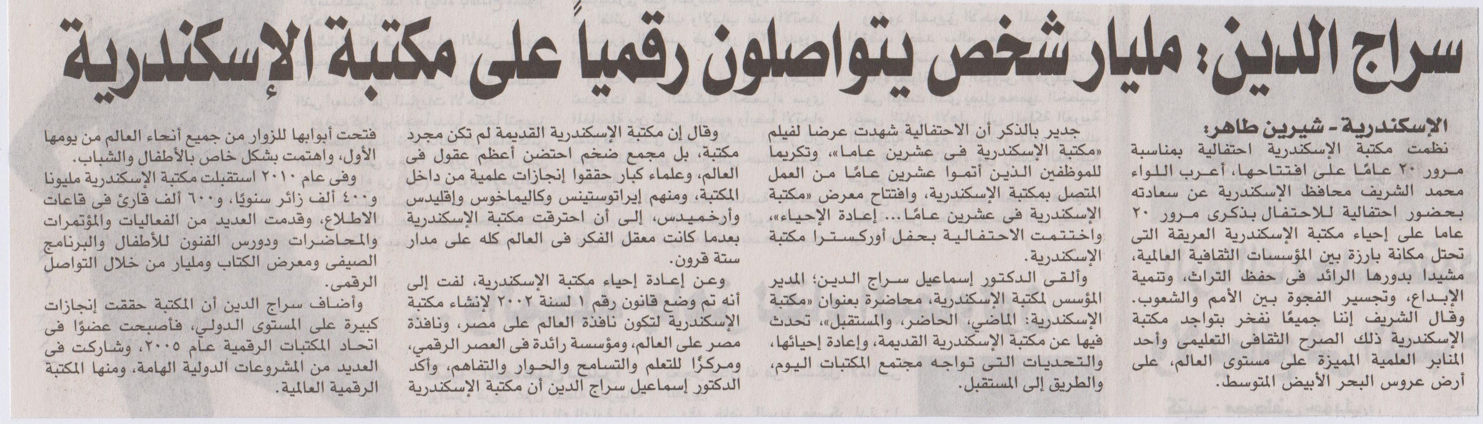 سراج الدين: مليار شخص يتواصلون رقمياً على مكتبة الإسكندرية
