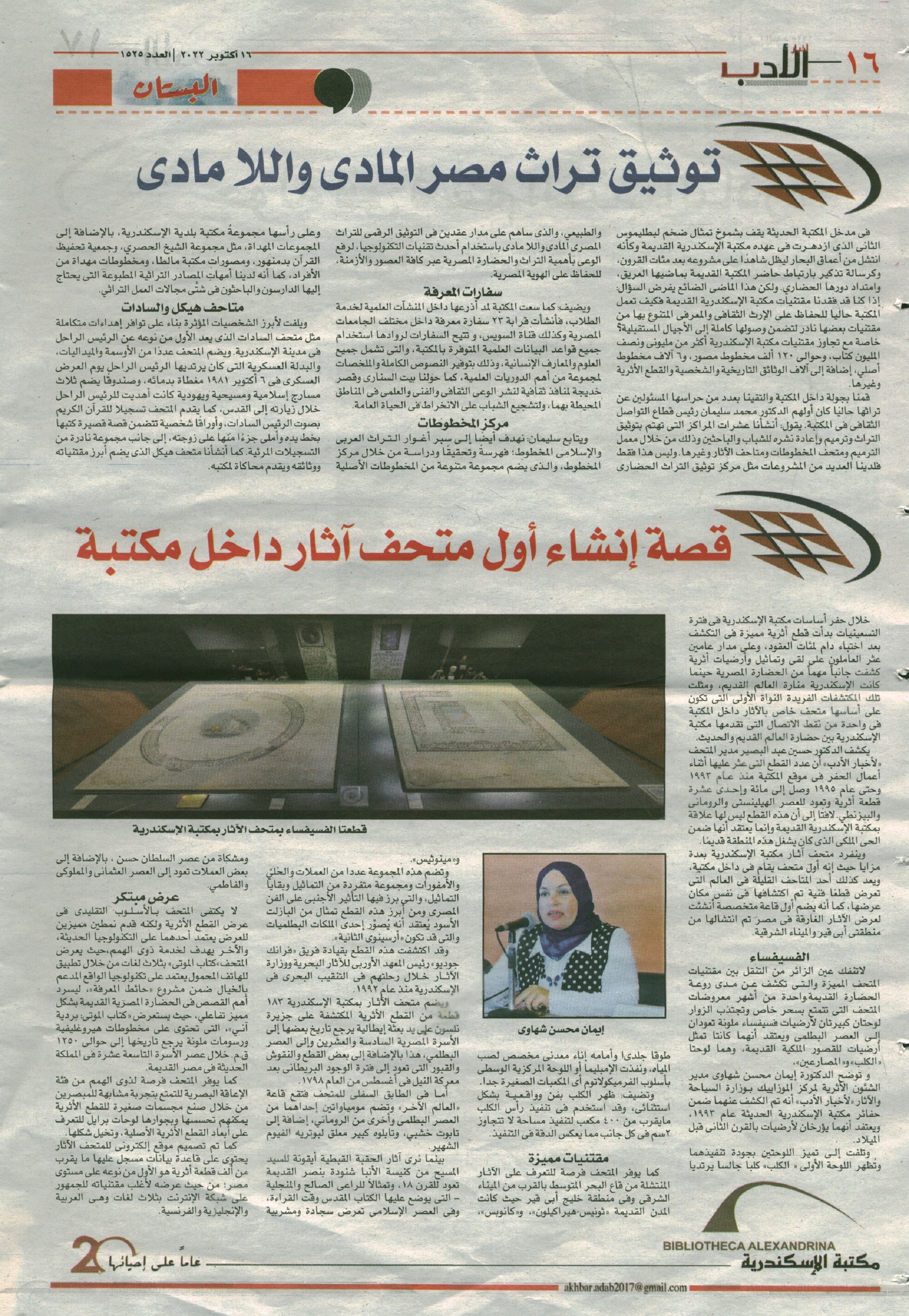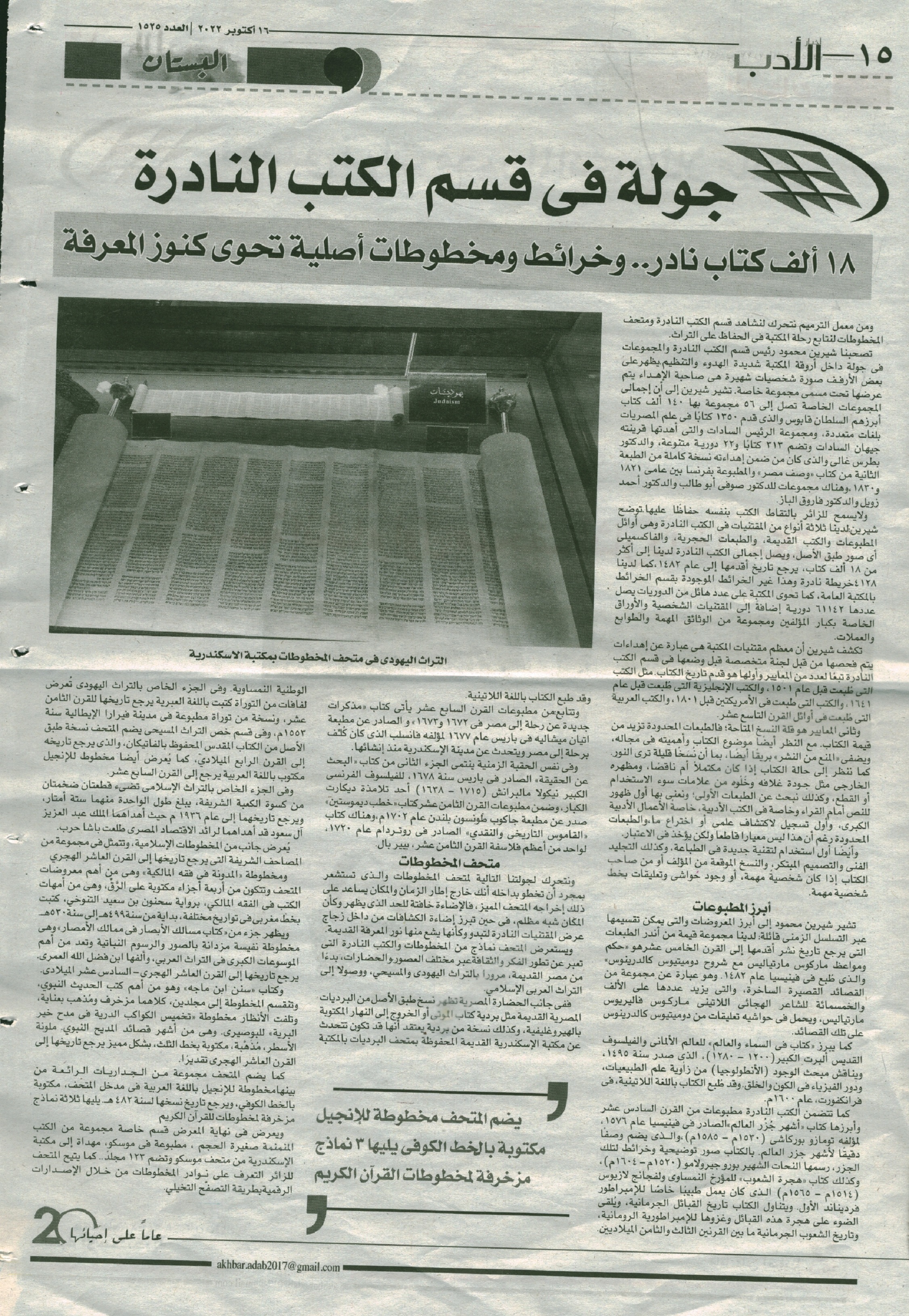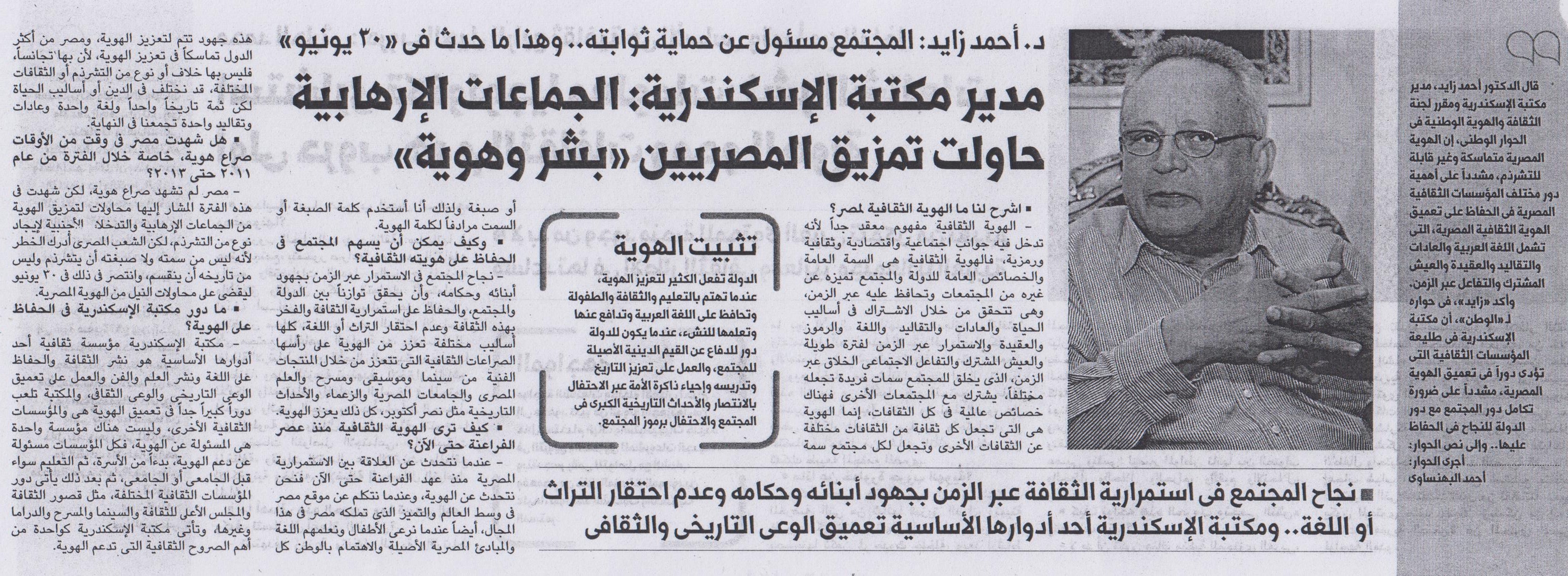 13 أكتوبر 2022 مدير مكتبة الإسكندرية: الجماعات الإرهابية حاولت تمزيق المصريين "بشر وهوية" جريدة الوطن