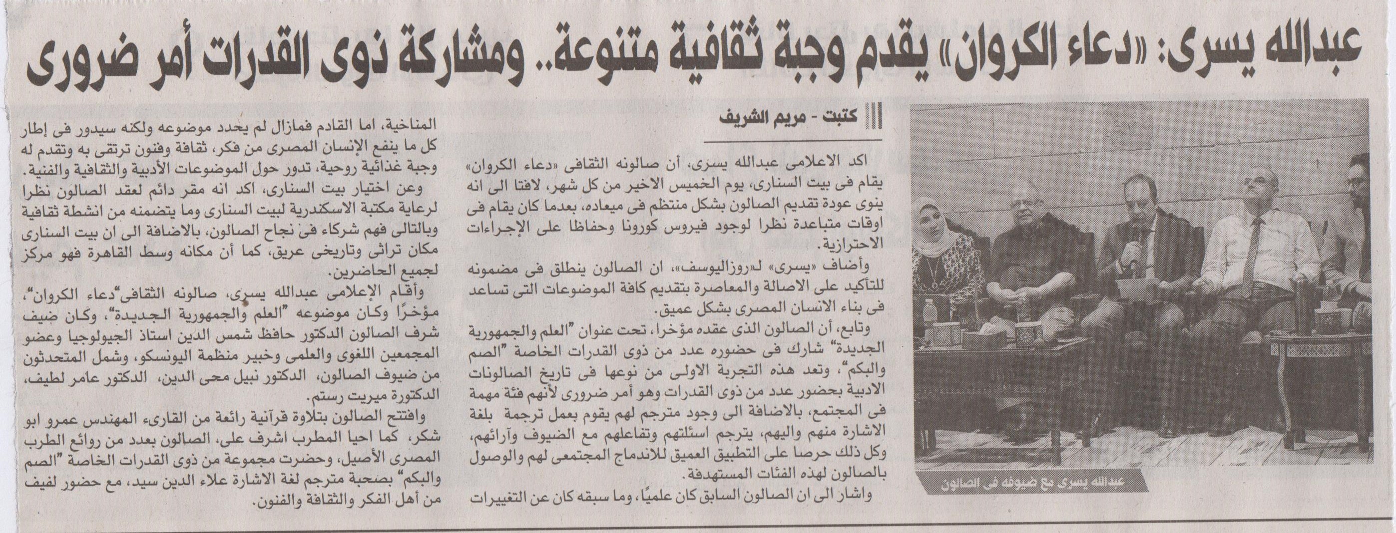 31 أغسطس 2022 عبد الله يسري: "دعاء الكروان" يقدم وجبة ثقافية متنوعة .. ومشاركة ذوي القدرات أمر ضروري روز اليوسف اليومية