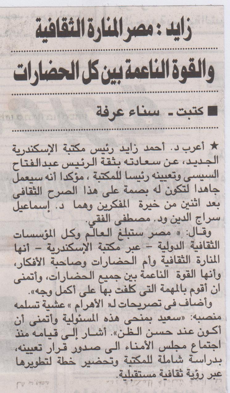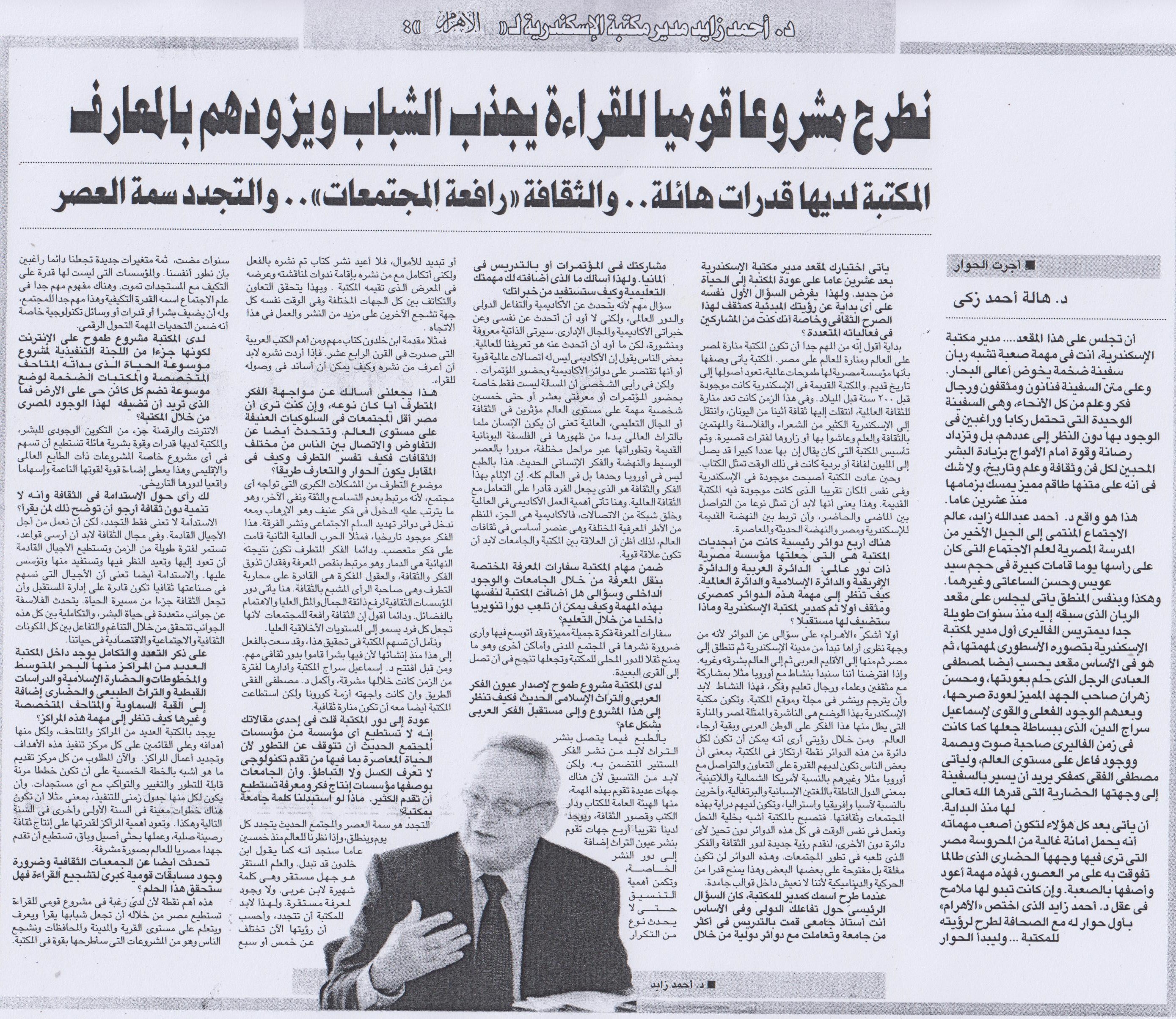 25 أغسطس 2022 د. أحمد زايد مدير مكتبة الإسكندرية في حواره لــ الأهرام: نطرح مشروعاً قومياً للقراءة يجذب الشباب ويزودهم بالمعارف الأهرام