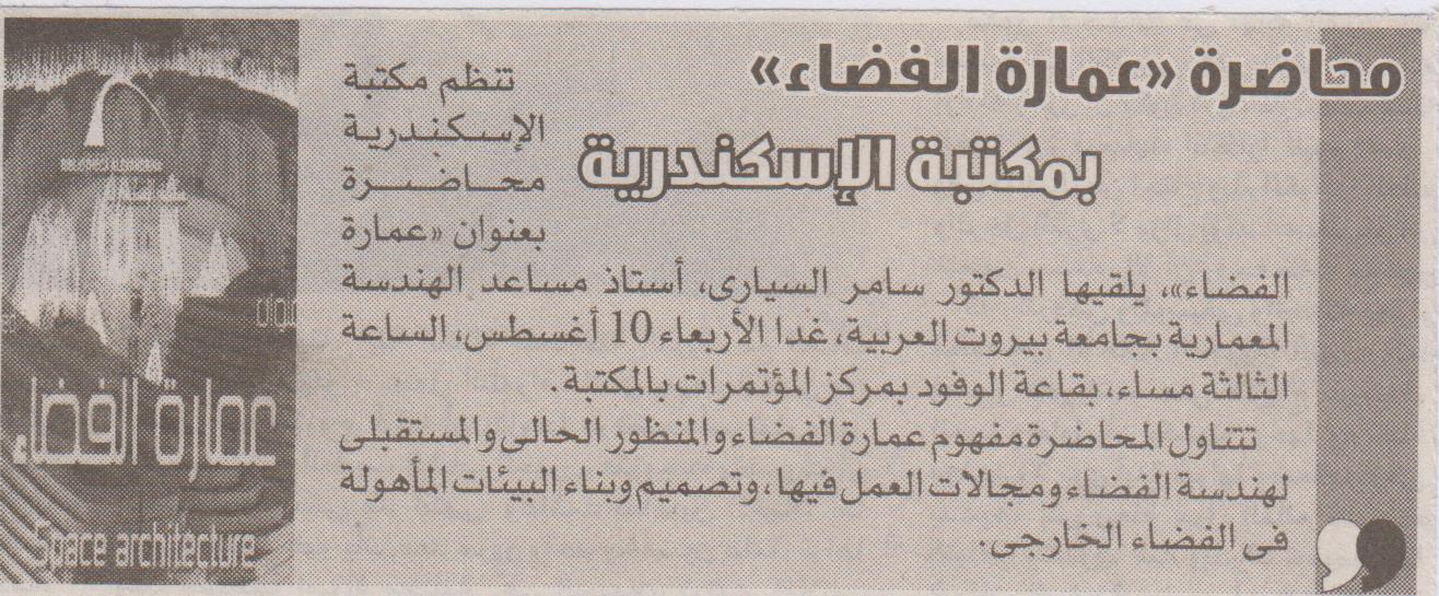 محاضرة "عمارة الفضاء" بمكتبة الإسكندرية