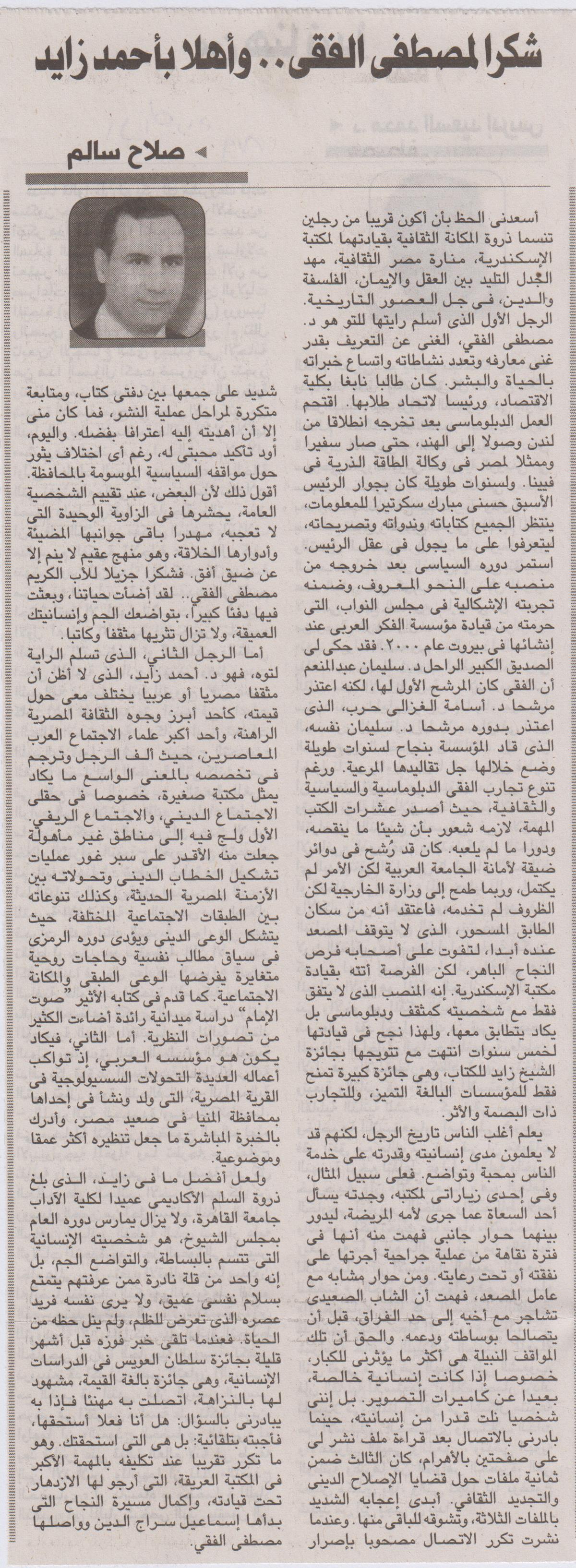 شكرا لمصطفى الفقي..وأهلا بأحمد زايد