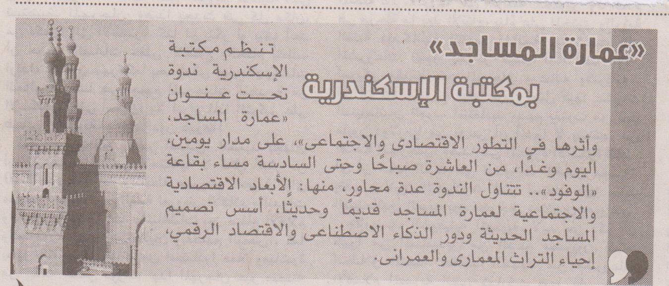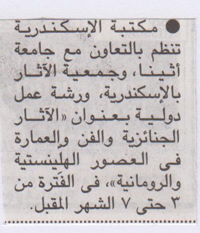 27 يونيو 2022 "الاثار الجنائزية والفن والعمارة في العصور الهلينستية والرومانية" بمكتبة الإسكندرية الأهرام