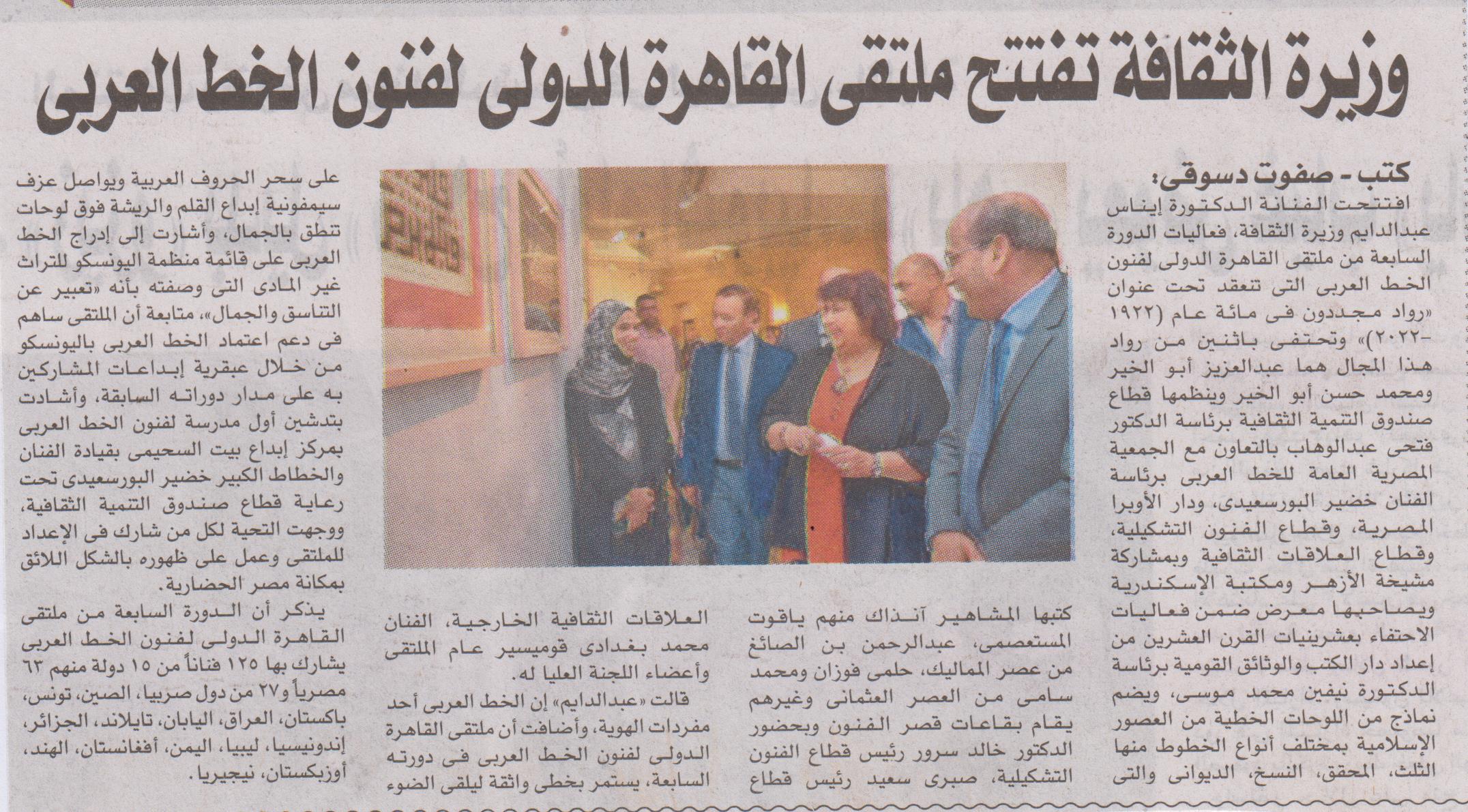 وزيرة الثقافة تفتتح ملتقي القاهرة الدولي لفنون الخط العربي