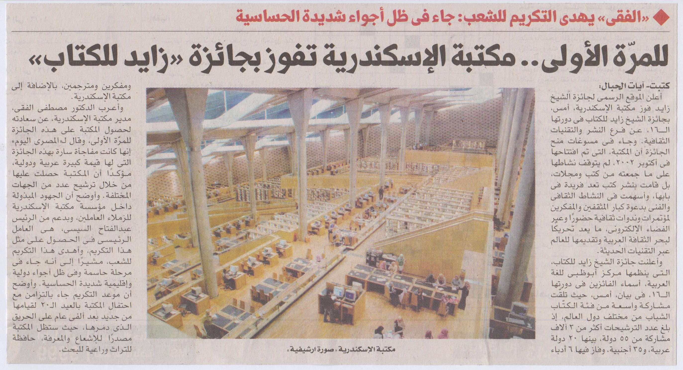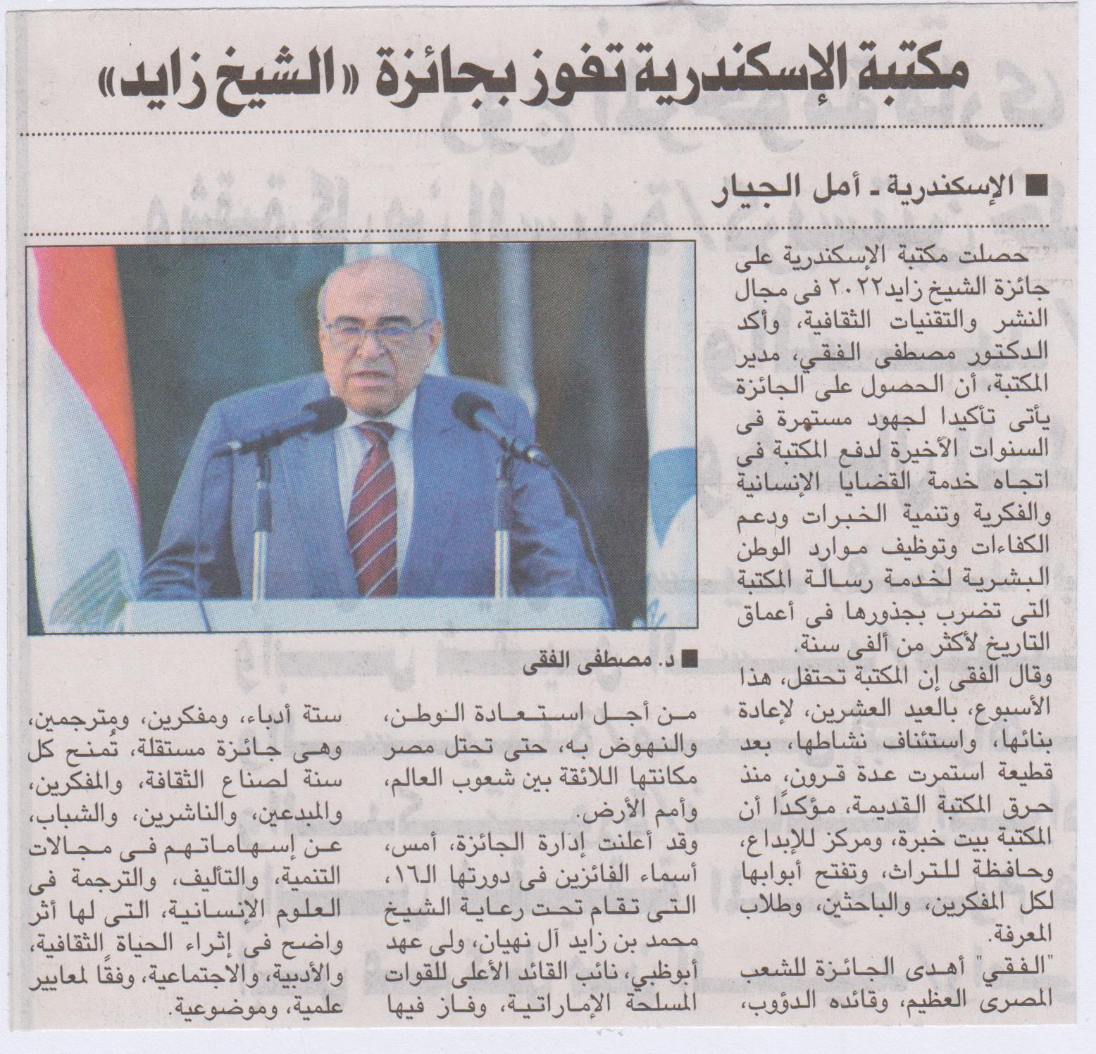 10 مايو 2022 "الفقي" يهدي التكريم للشعب: جاء في ظل أجواء شديدة الحساسية للمرة الأولى..مكتبة الإسكندرية تفوز بجائزة "زايد للكتاب" المصري اليوم