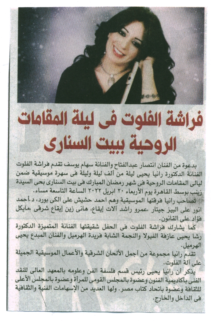 فراشة الفلوت في ليلة المقامات الروحية ببيت السناري