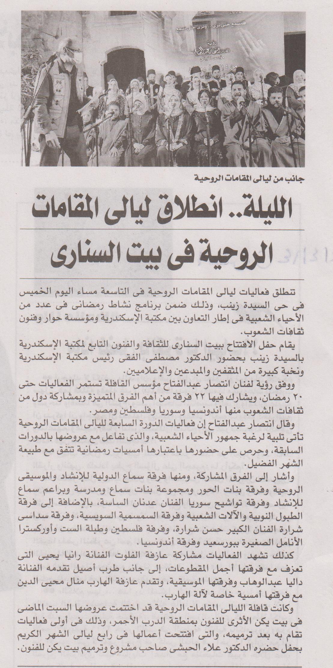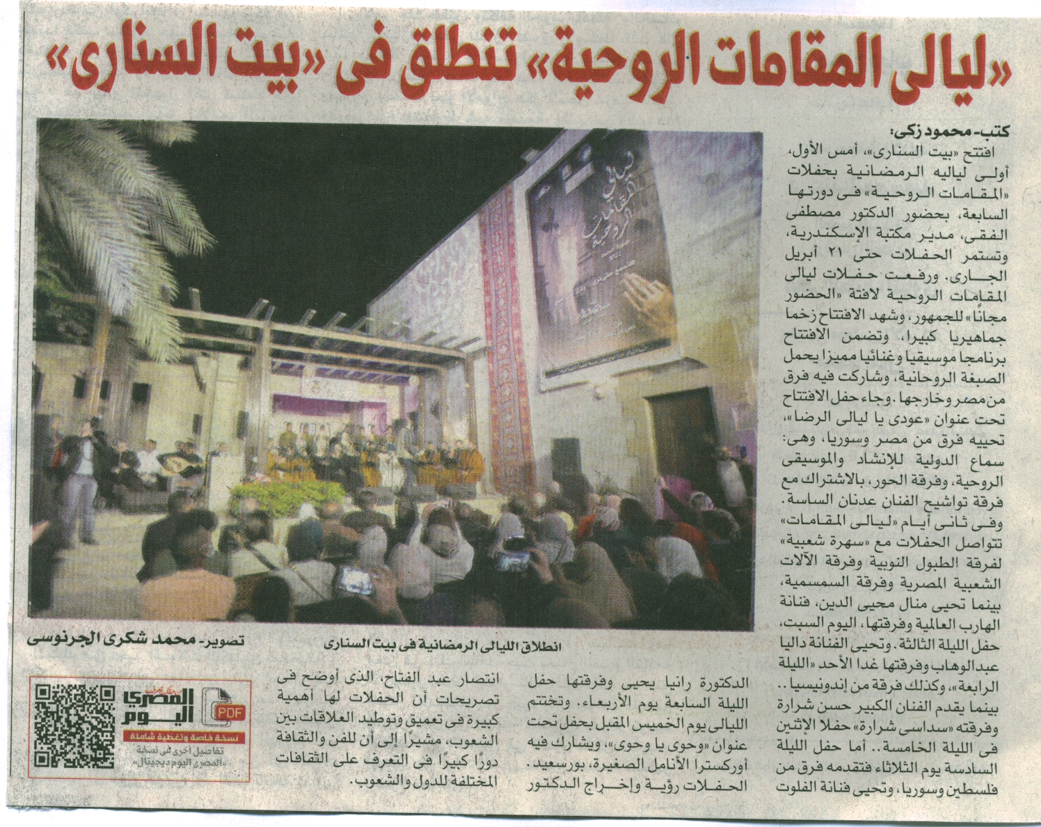 "ليالي المقامات الروحية" تنطلق في "بيت السناري"