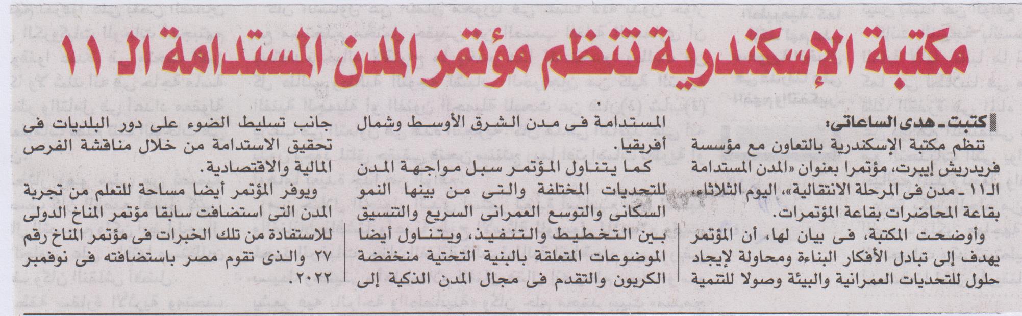 مكتبة الإسكندرية تنظم مؤتمر المدن المستدامةالـ 11