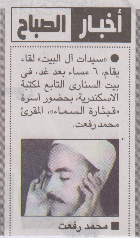 "سيدات آل البيت" لقاء يقام 6 مساءبعد غد في بيت السناري
