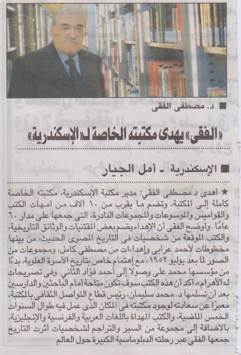 "الفقي" يهدي مكتبته الخاصة لـ "الإسكندرية"