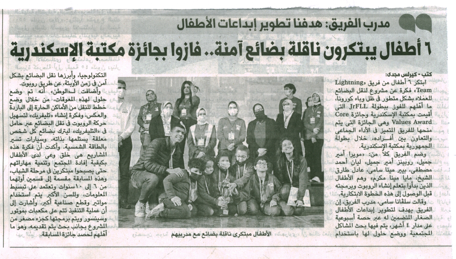 6 أطفال يبتكرون ناقلة بضائع آمنة. فازوا بجائزة مكتبة الإسكندرية