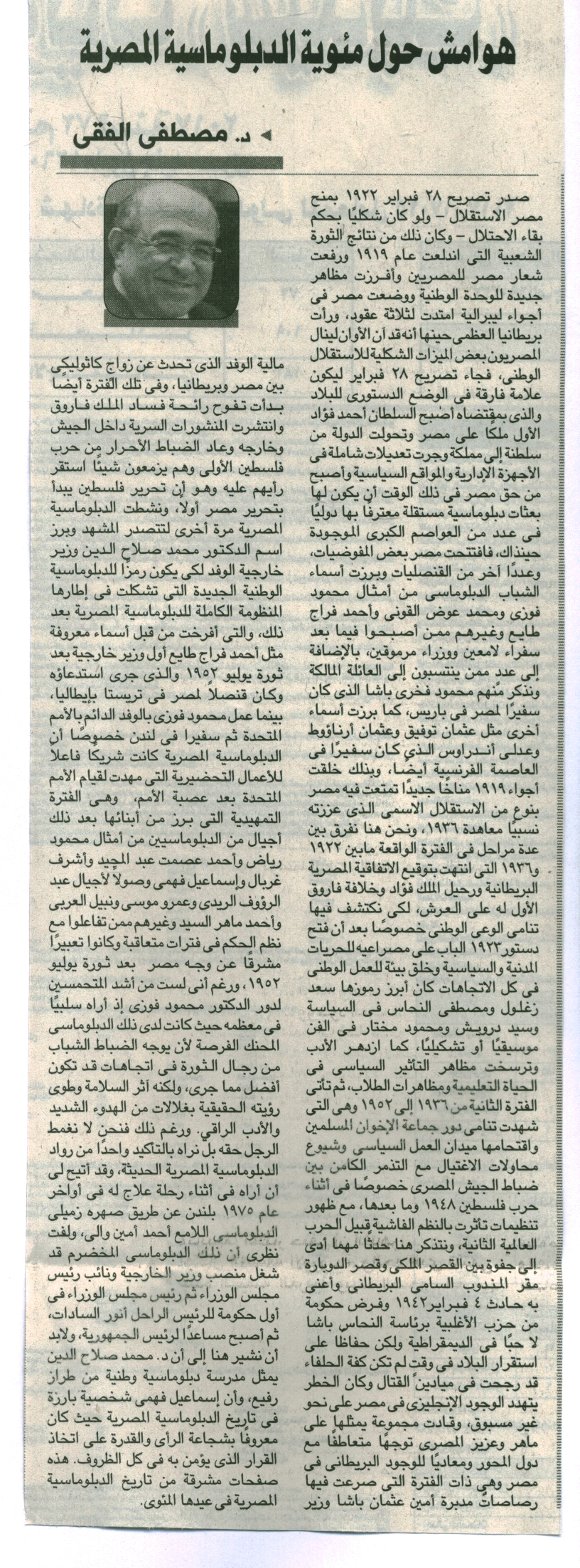 هوامش حول مئوية الدبلوماسية المصرية
