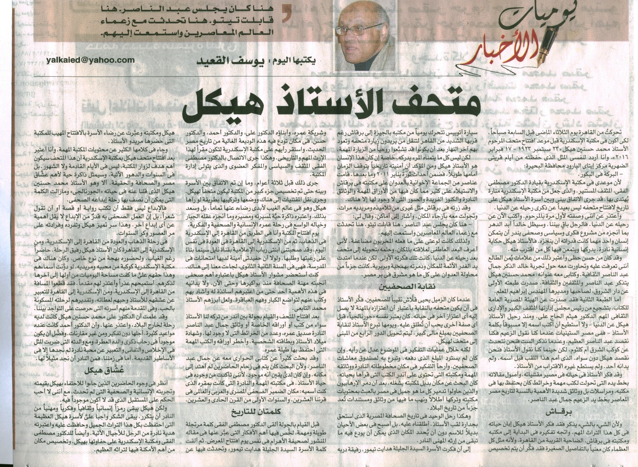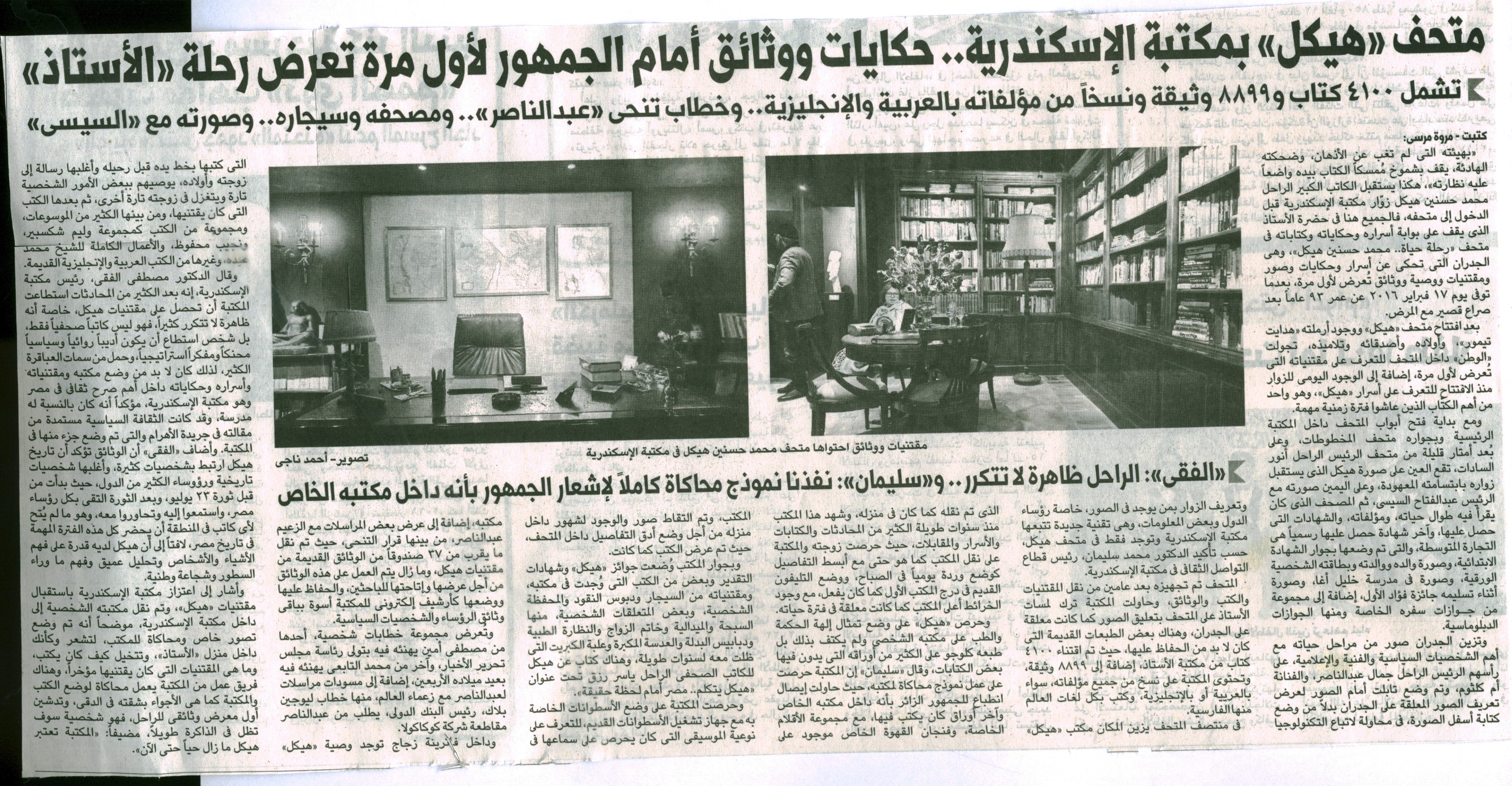 15 فبراير 2022 متحف "هيكل" بمكتبة الإسكندرية.. حكايات ووثائق أمام الجمهور لأول مرة تعرض رحلة "الأستاذ" جريدة الوطن