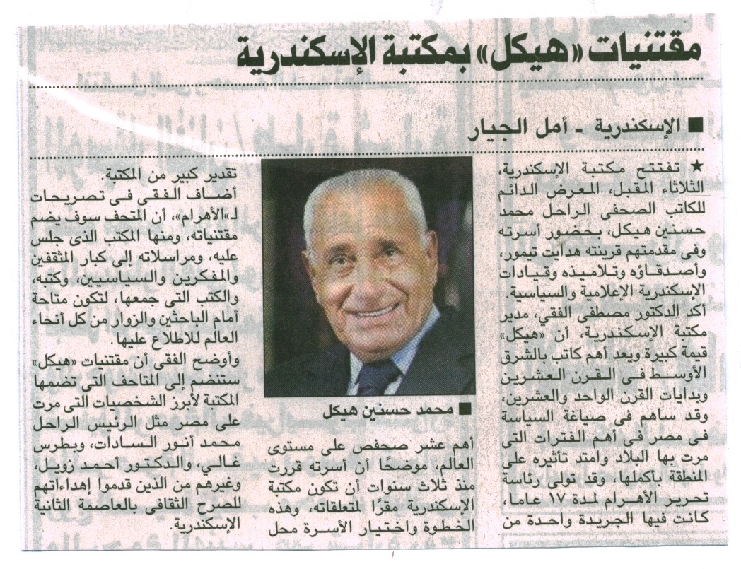 مقتنيات " هيكل " بمكتبة الإسكندرية