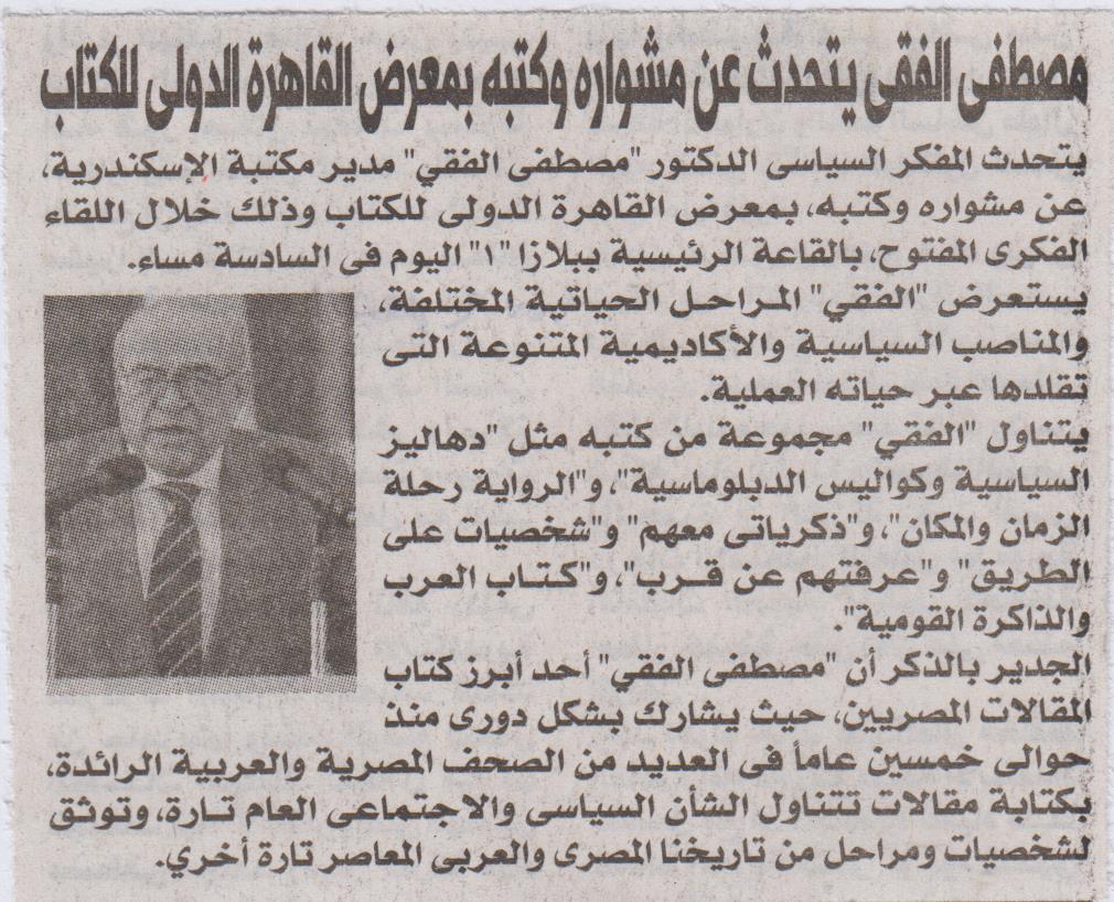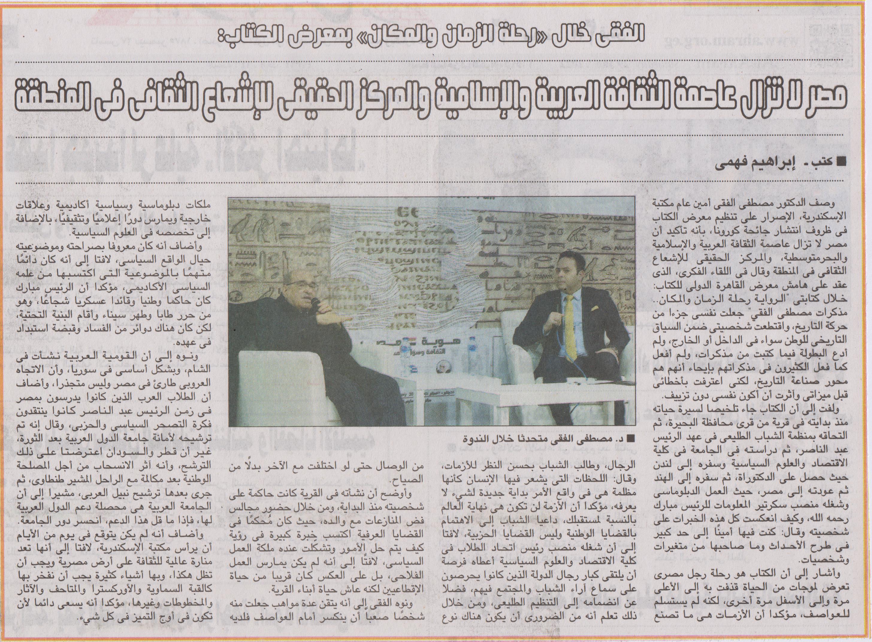 29 يناير 2022 الفقي خلال "رحلة الزمان والمكان"بمعرض الكتاب: مصر لا تزال عاصمة الثقافة العربية والإسلامية والمركز الحقيقي للإشعاع الثقافي في المنطقة الأهرام