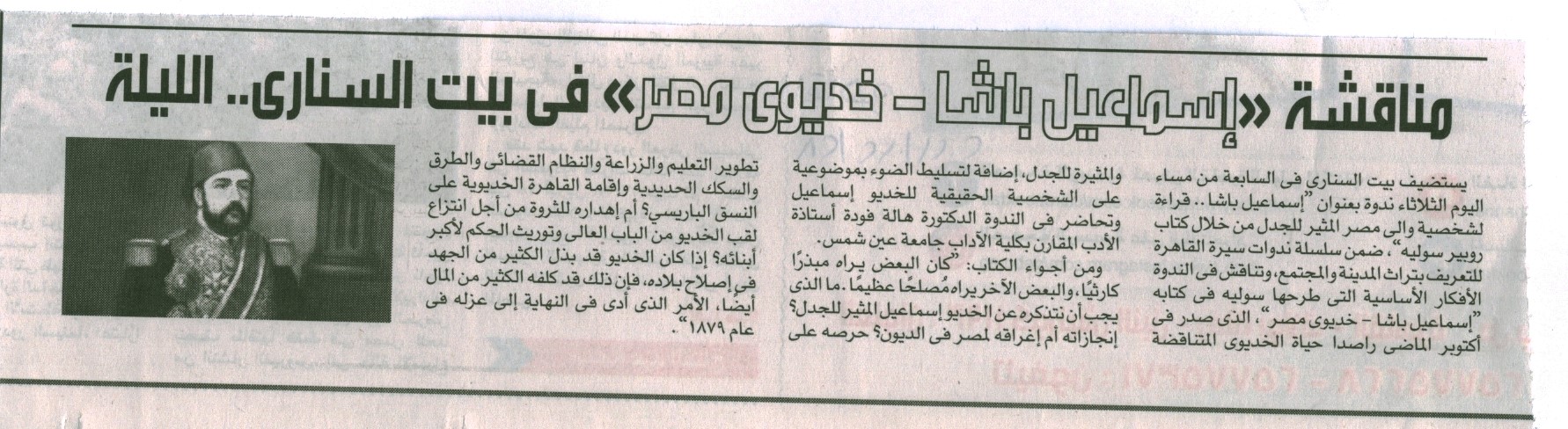 مناقشة"إسماعيل باشا-خديوي مصر" في بيت السناري