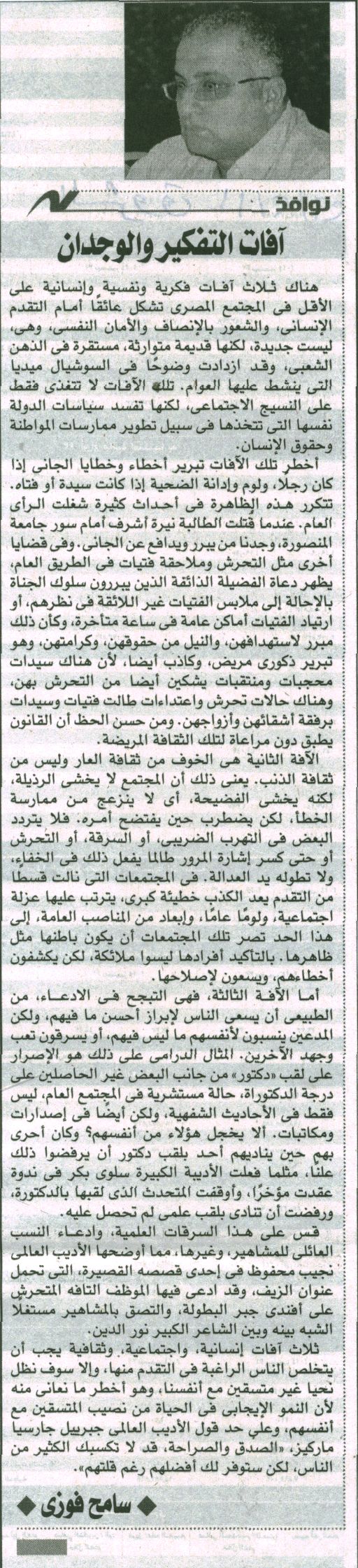 نوافذ. سامح فوزي: آفات التفكير والوجدان