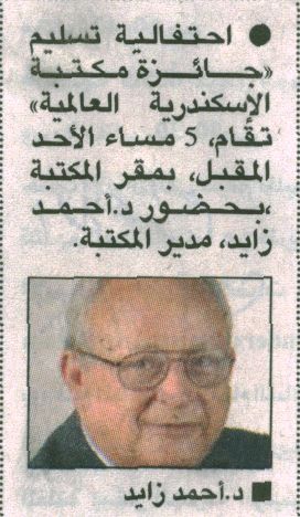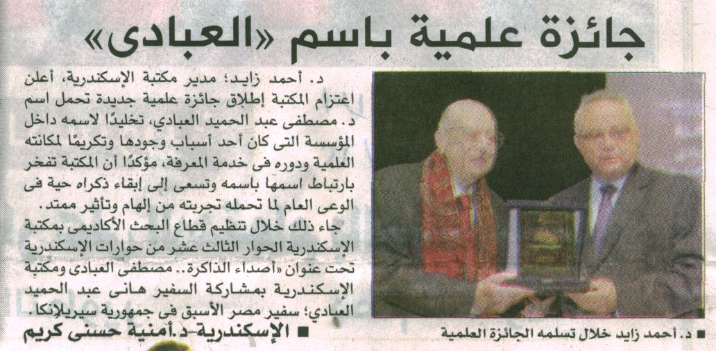 جائزة علمية باسم "العبادي" بمكتبة الإسكندرية
