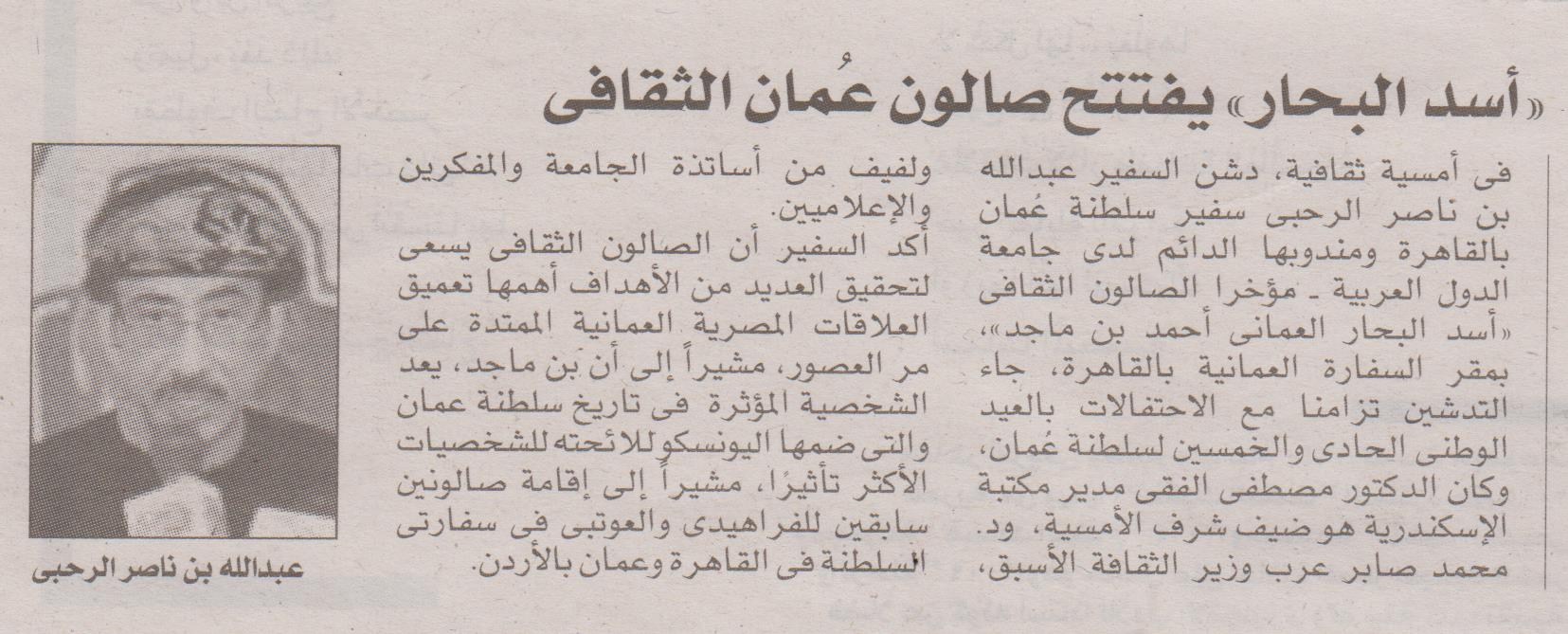"أسد البحار" يفتتح صالون عُمان الثقافي