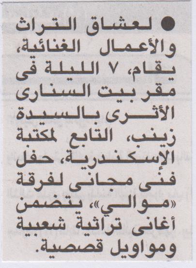 حفل فني مجاني لفرقة "موالي" ببيت السناري