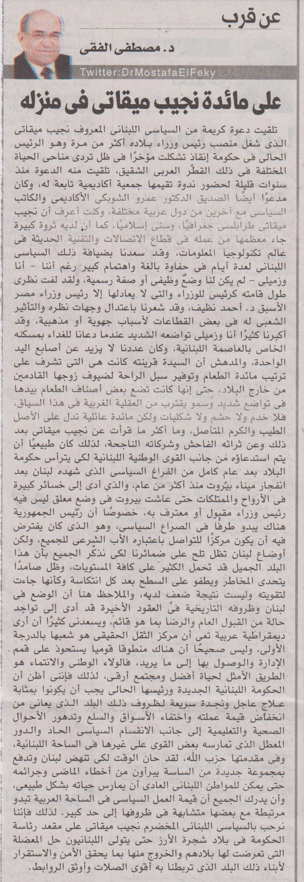 علي مائدة نجيب ميقاتي في منزله