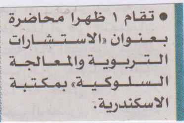 "الاستشارات التربوية والمعالجة السلوكية" محاضرة بمكتبة الإسكندرية