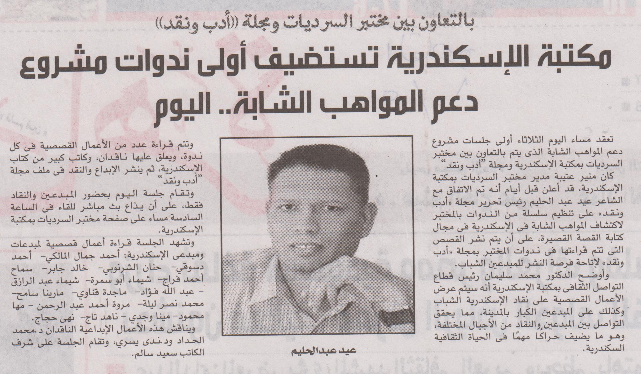 مكتبة الإسكندرية تستضيف أولي ندوات مشروع دعم المواهب الشابة