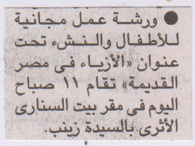 "الأزياء في مصر القديمة" ورشة عمل ببيت السناري