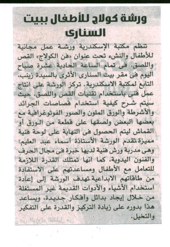 ورشة الكولاج للأطفال ببيت السناري