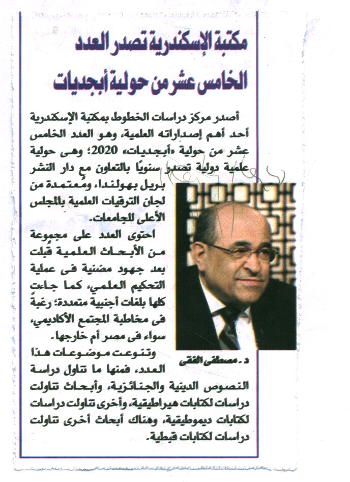 مكتبة الإسكندرية تصدر العدد الخامس عشر من حولية أبجديات