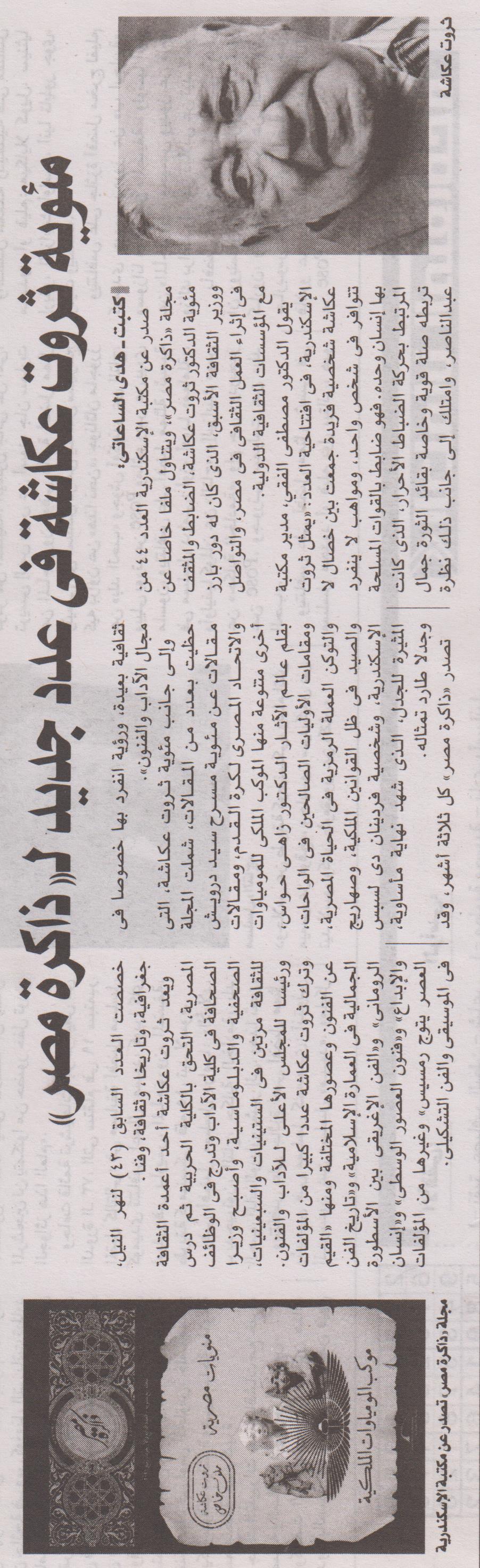 مئوية ثروت عكاشة في عدد جديد لـ"ذاكرة مصر"