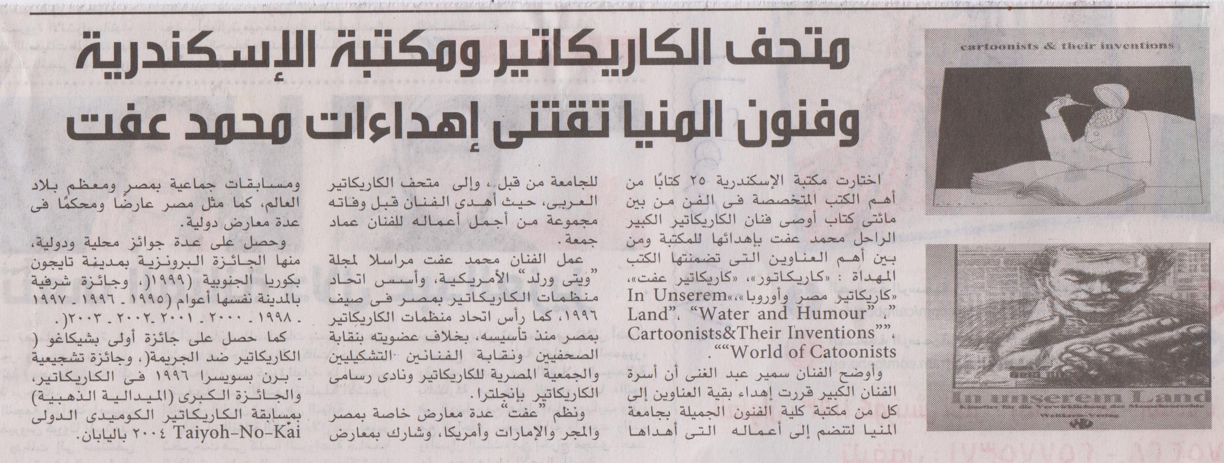 متحف الكاريكاتير ومكتبة الإسكندرية وفنون المنيا تقتني إهداءات محمد عفت