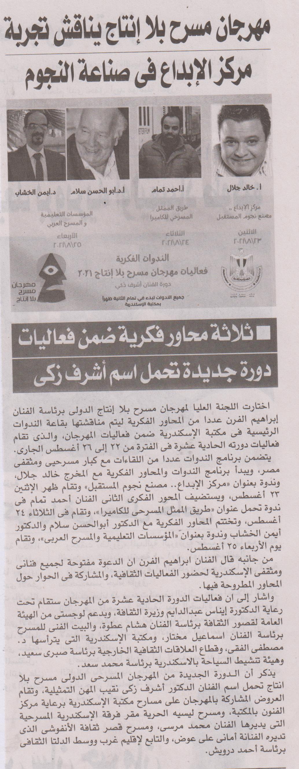 مهرجان مسرح بلا إنتاج يناقش تجربة مركز الإبداع في صناعة النجوم
