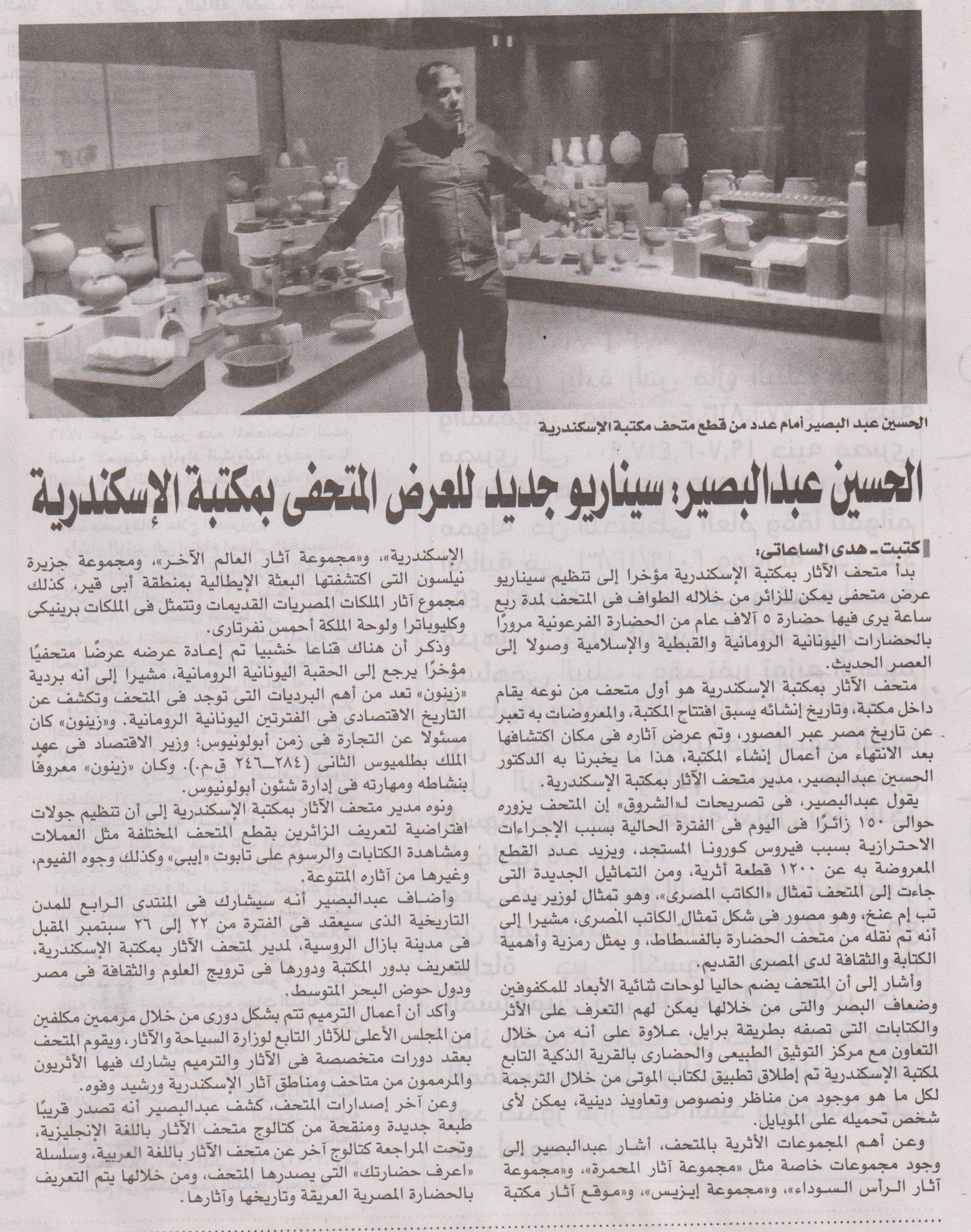 الحسين عبد البصير: سيناريو جديد للعرض المتحفي بمكتبة الإسكندرية