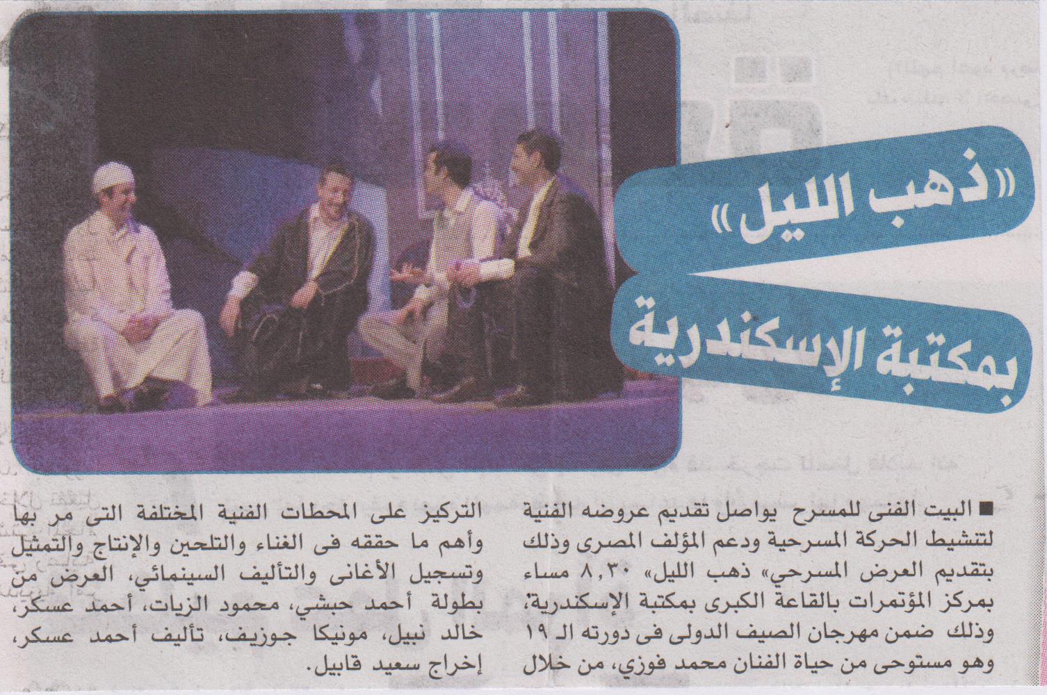 "ذهب اليل" عرض مسرحي بمكتبة الإسكندرية