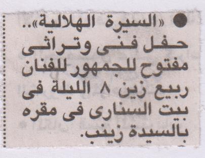 "السيرة الهلالية" حفل فني و تراثي في بيت السناري