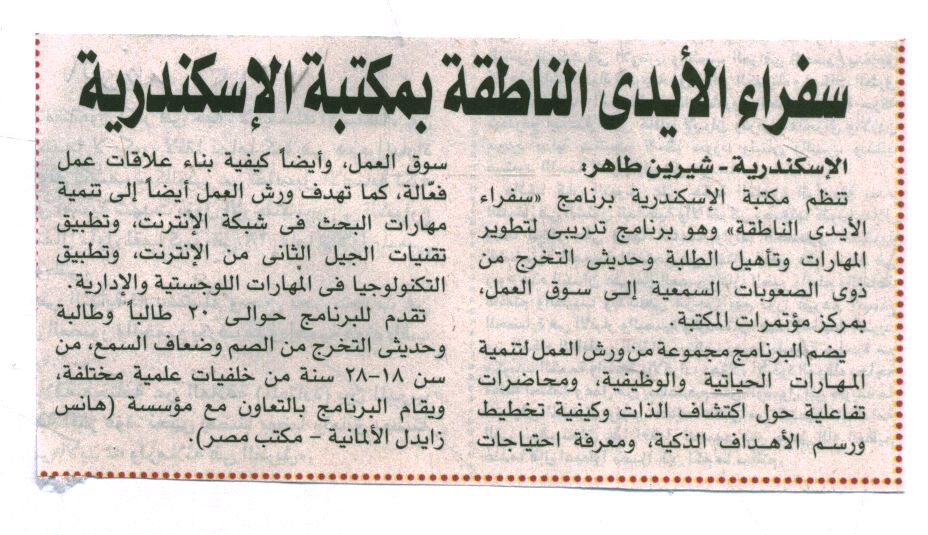 مكتبة الإسكندرية تطلق"سفراء الأيدي الناطقة"لتأهيل ذوي الصعوبات السمعية