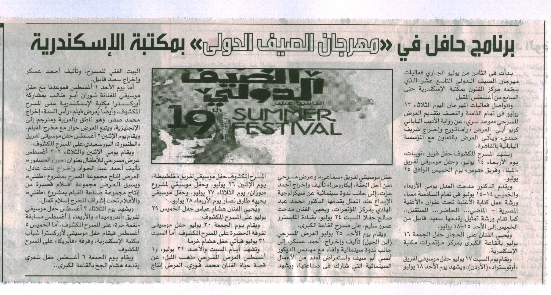 برنامج حافل في" مهرجان الصيف الدولي" بمكتبة الإسكندرية