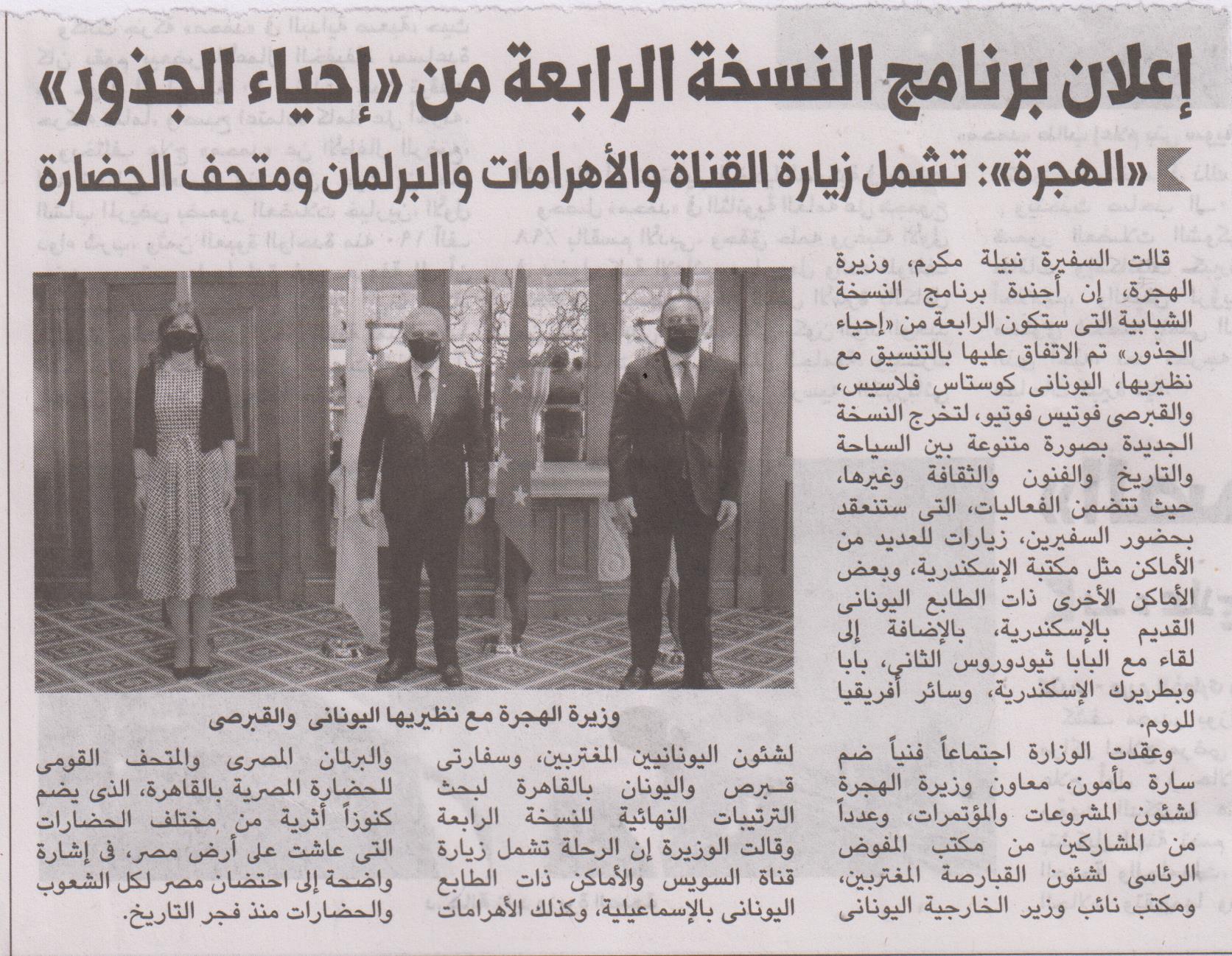 02 يوليه 2021 إعلان برنامج النسخة الرابعة من "إحياء الجذور" "الهجرة" تشمل زيارة القناة و الأهرامات والبرلمان ومتحف الأثار الوفد