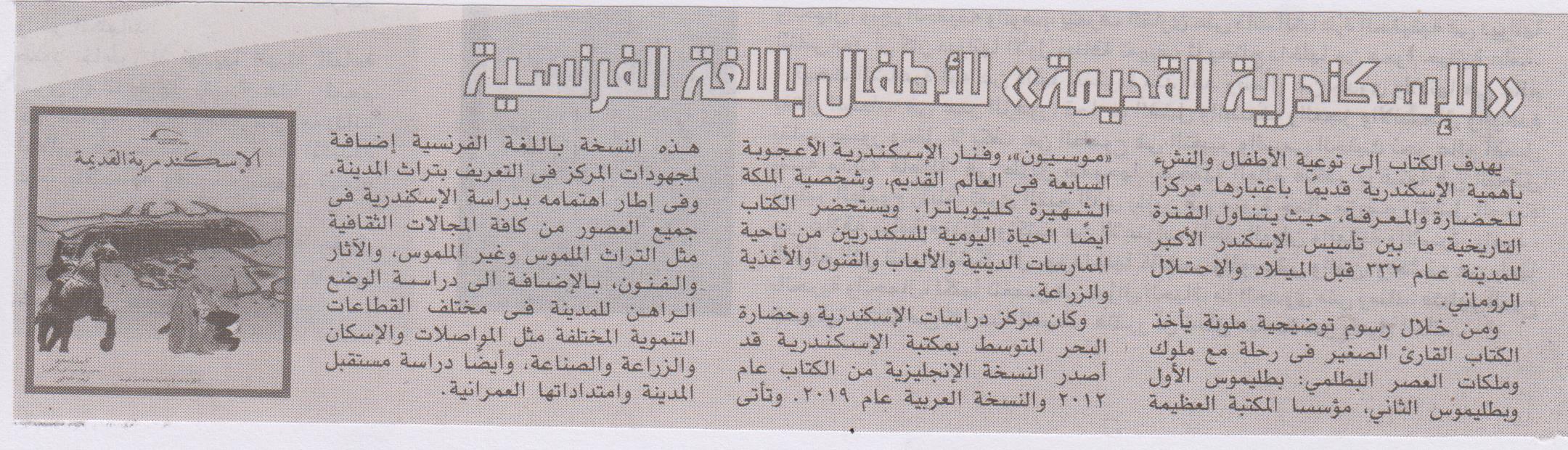 "الإسكندرية القديمة" للأطفال باللغة الفرنسية