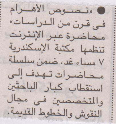 "نصوص الأهرام في قرن من الدراسات" محاضرة بمكتبة الإسكندرية