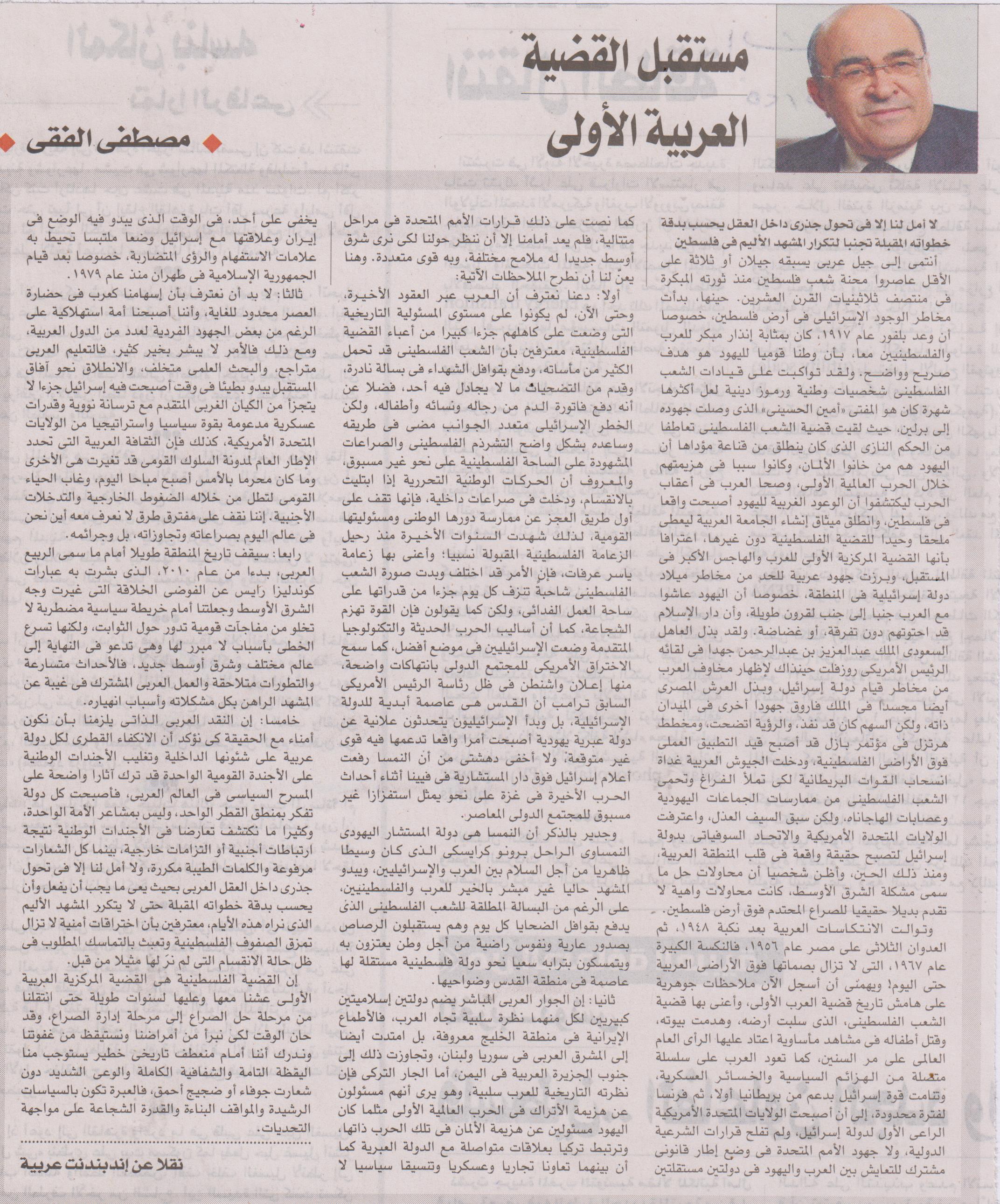 مستقبل القضية العربية الأولي