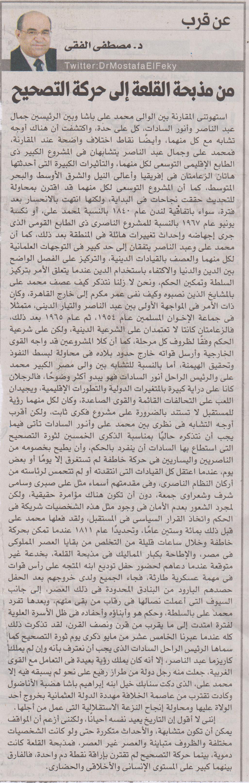 من مذبحة القلعة إلي حركة التصحيح