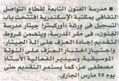 14 مارس 2026 مدرسة الفنون بمكتبة الإسكندرية افتتحت باب التسجيل في ورشة "أوركسترا جيتار مدرسة الفنون" المصري اليوم