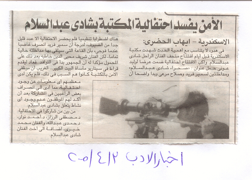 الامن يفسد احتفالية المكتبة بشادى عبد السلام