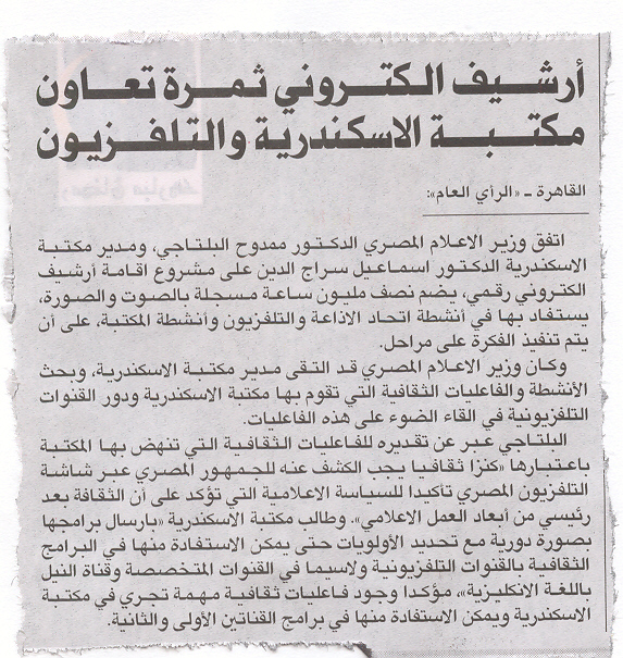 ارشيف الكتروني ثمرة تعاون مكتبة الاسكندرية والتليفيون