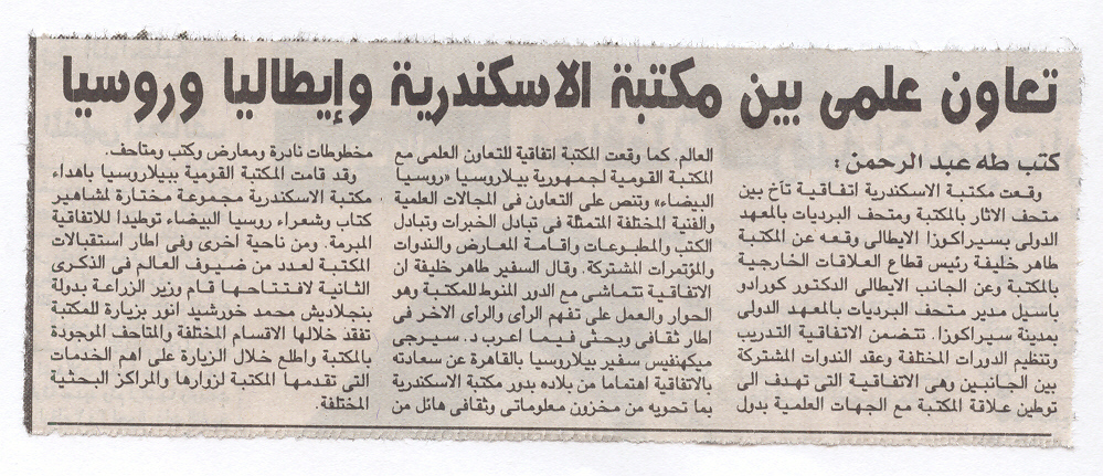 تعاون علمى بين مكتبة الاسكندرية وايطاليا وروسيا