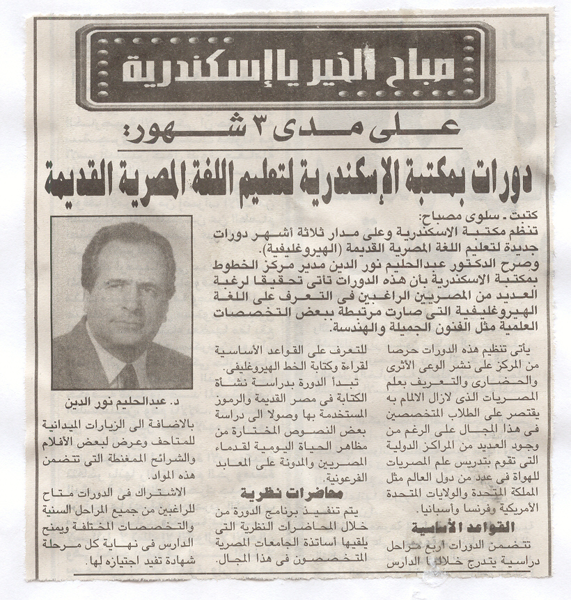 دورات بمكتبة الاسكندرية لتعليم اللغة المصرية القديمة